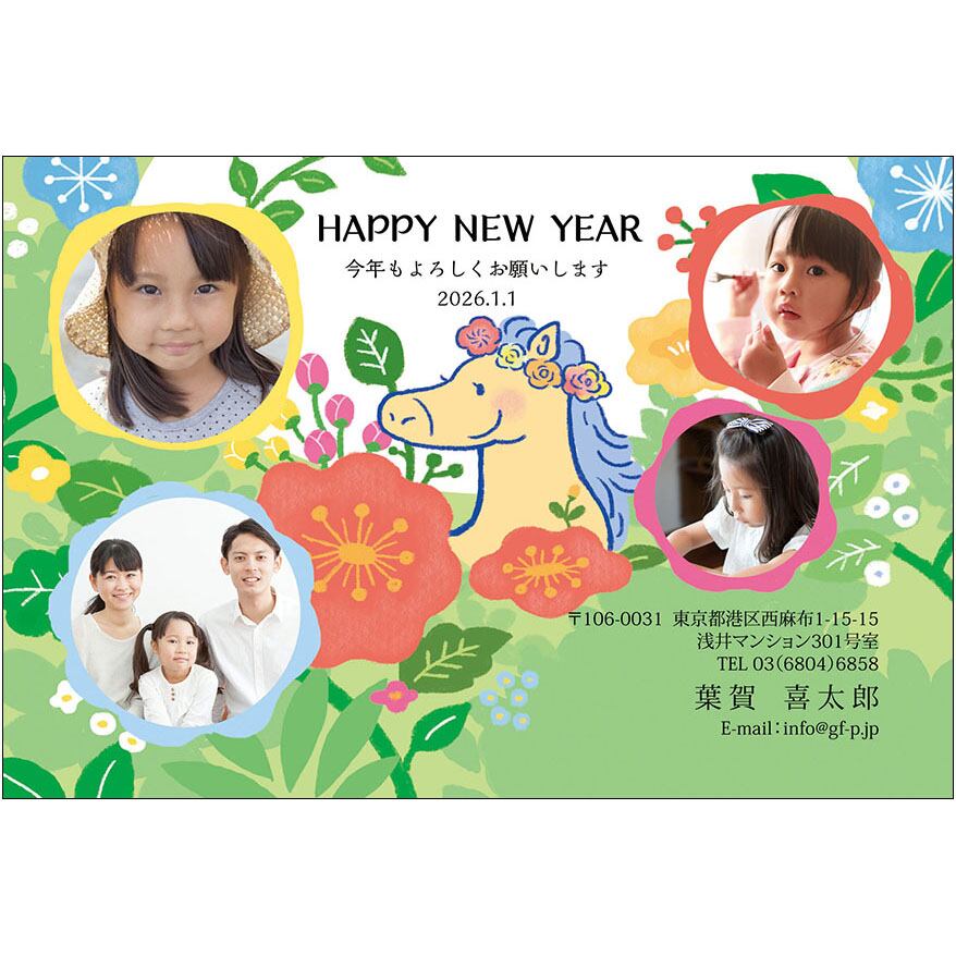 2026午年用の年賀状デザインです。インクジェットプリンターなどで、はがきに印刷してお使いください。