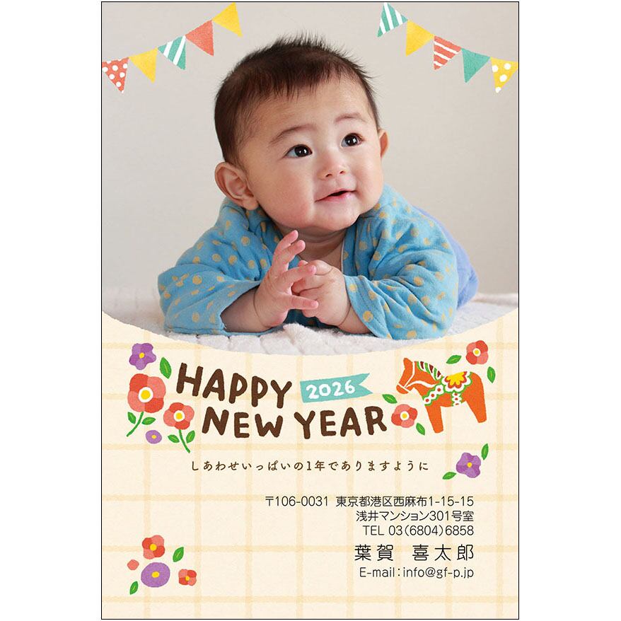 年賀状 , 午年 , うま年 , うまどし , 馬 , 2026年 , デザイン , ダウンロード ,写真を入れるタイプ , おしゃれ・かわいい , A0869 , DC03