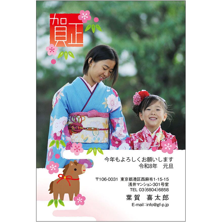 年賀状 , 午年 , うま年 , うまどし , 馬 , 2026年 , デザイン , ダウンロード ,写真を入れるタイプ , 和風 , A0857 , DC05