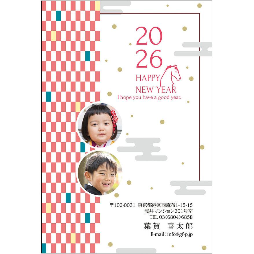 2026午年用の年賀状デザインです。インクジェットプリンターなどで、はがきに印刷してお使いください。