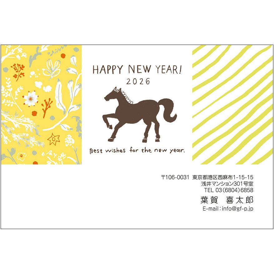 2026午年用の年賀状デザインです。インクジェットプリンターなどで、はがきに印刷してお使いください。