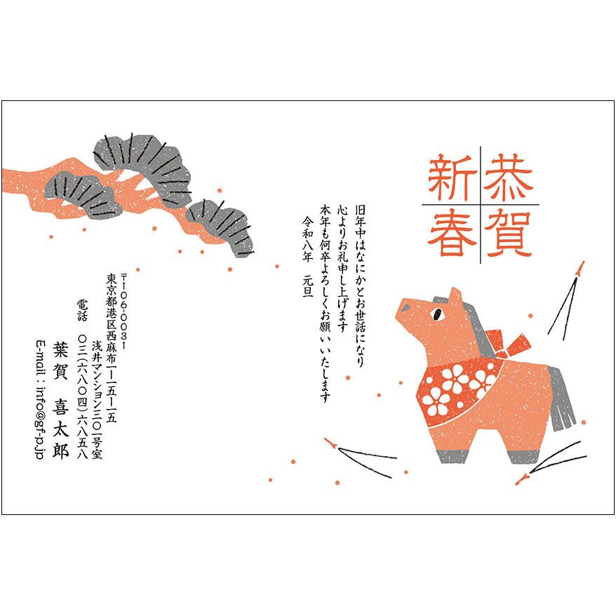 2026午年用の年賀状デザインです。インクジェットプリンターなどで、はがきに印刷してお使いください。