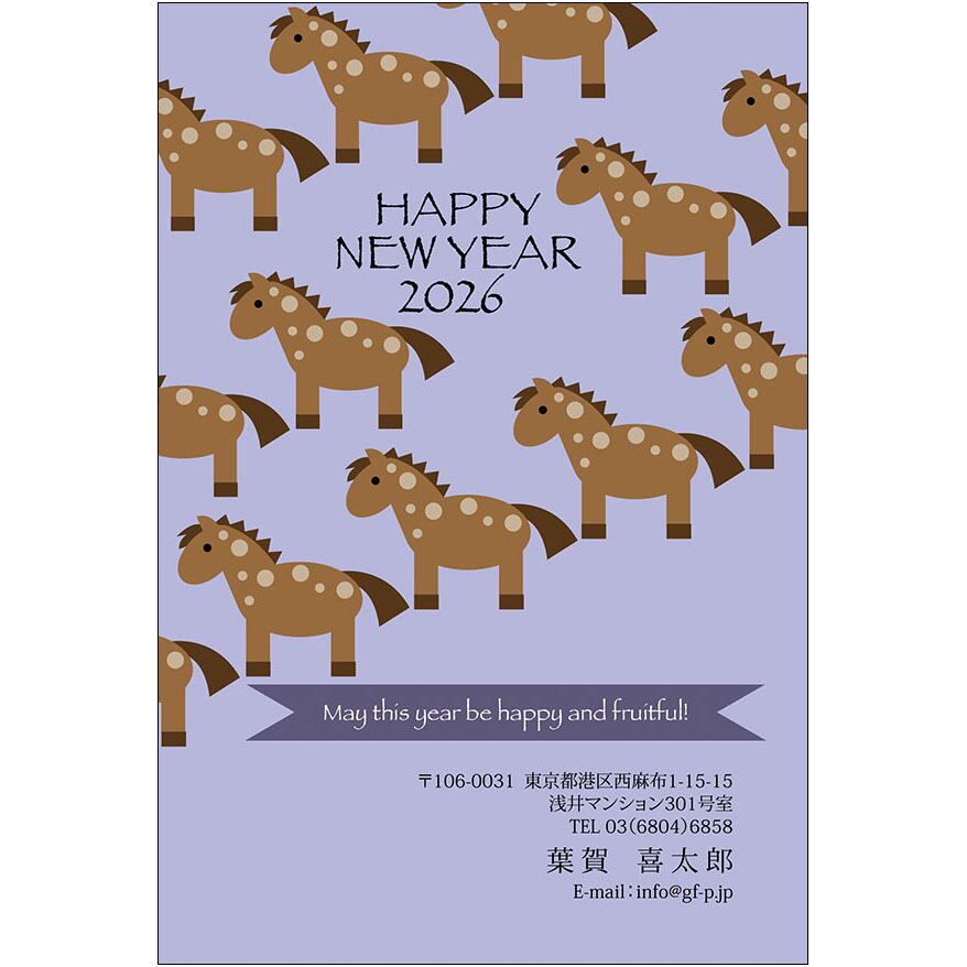 2026午年用の年賀状デザインです。インクジェットプリンターなどで、はがきに印刷してお使いください。