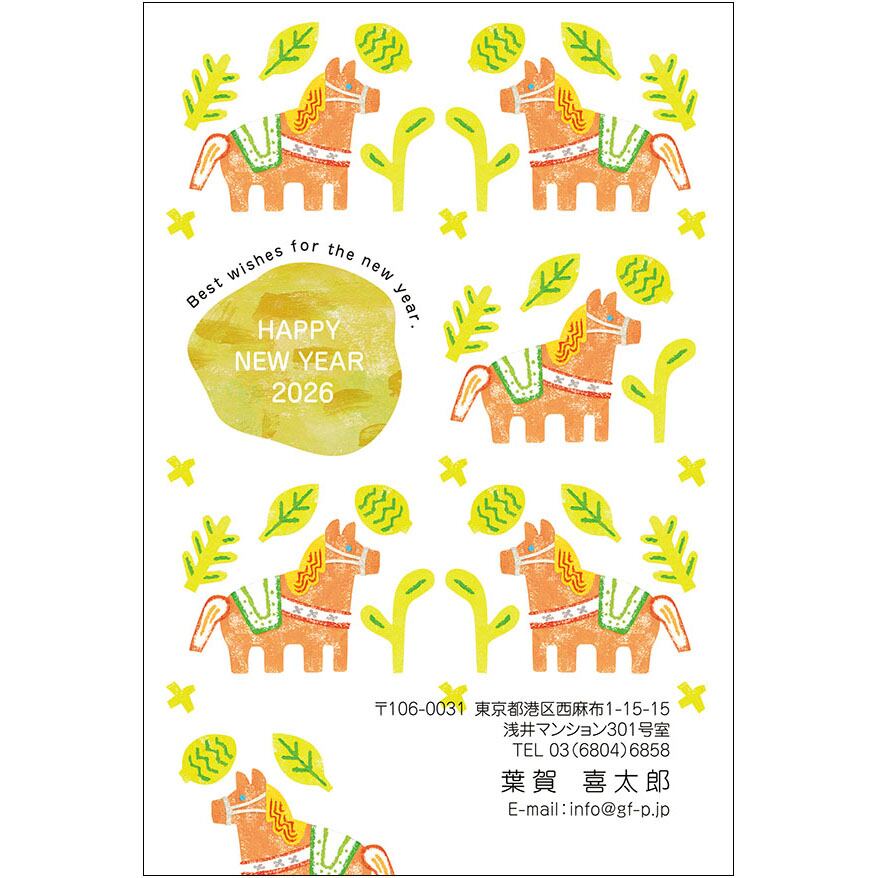 2026午年用の年賀状デザインです。インクジェットプリンターなどで、はがきに印刷してお使いください。