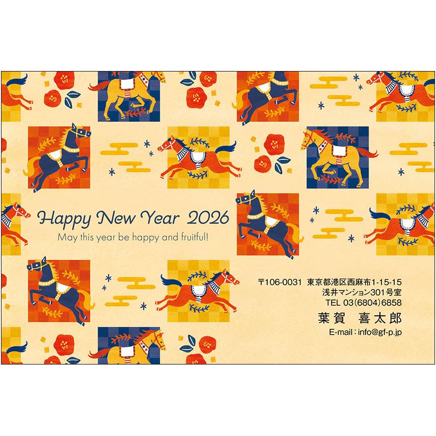2026午年用の年賀状デザインです。インクジェットプリンターなどで、はがきに印刷してお使いください。