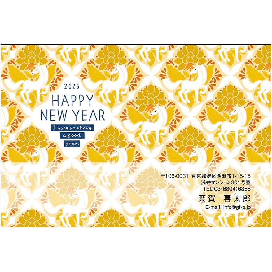 2026午年用の年賀状デザインです。インクジェットプリンターなどで、はがきに印刷してお使いください。