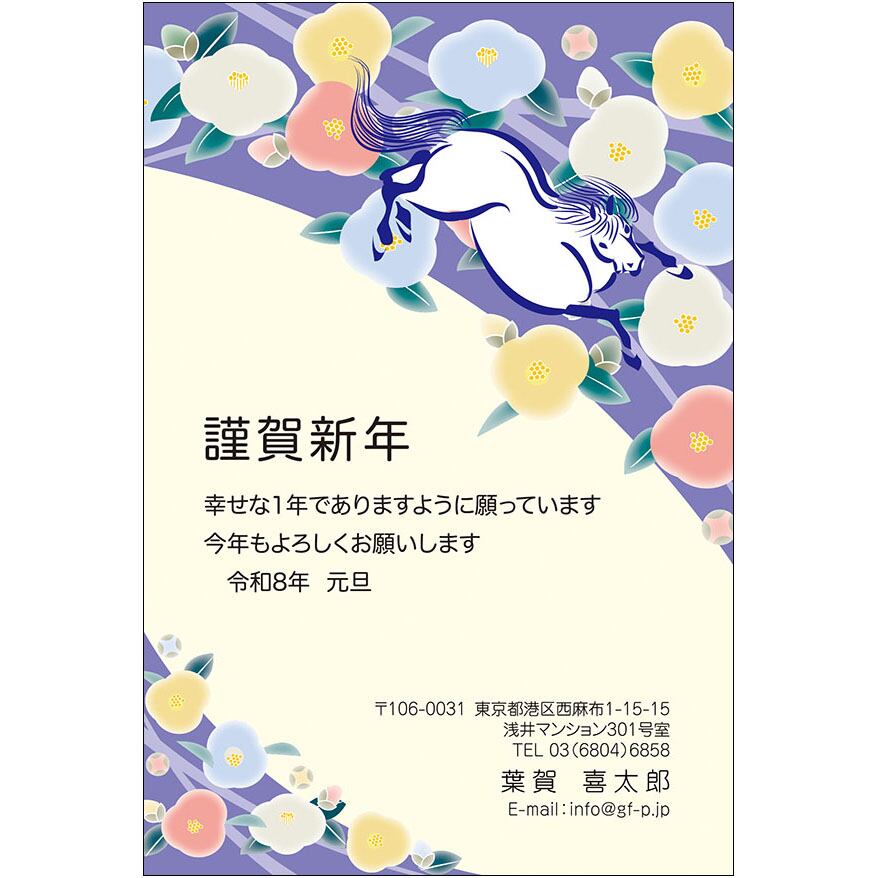 2026午年用の年賀状デザインです。インクジェットプリンターなどで、はがきに印刷してお使いください。