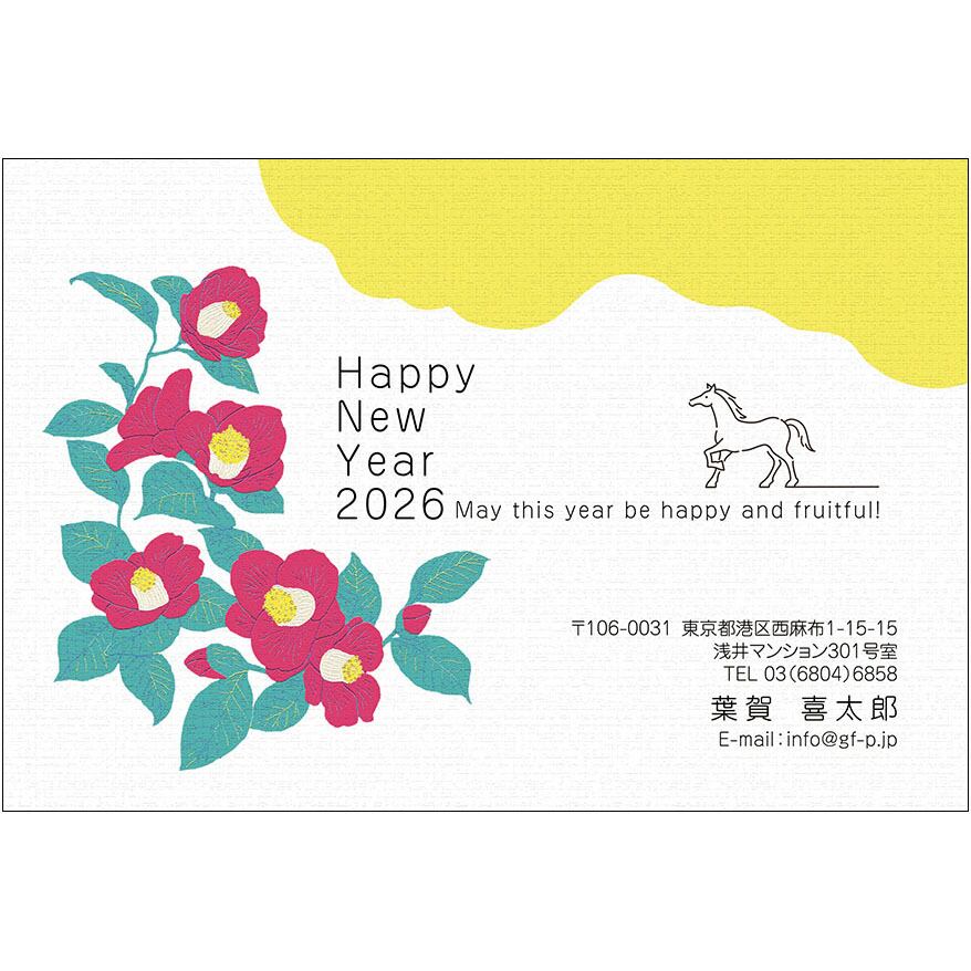 2026午年用の年賀状デザインです。インクジェットプリンターなどで、はがきに印刷してお使いください。
