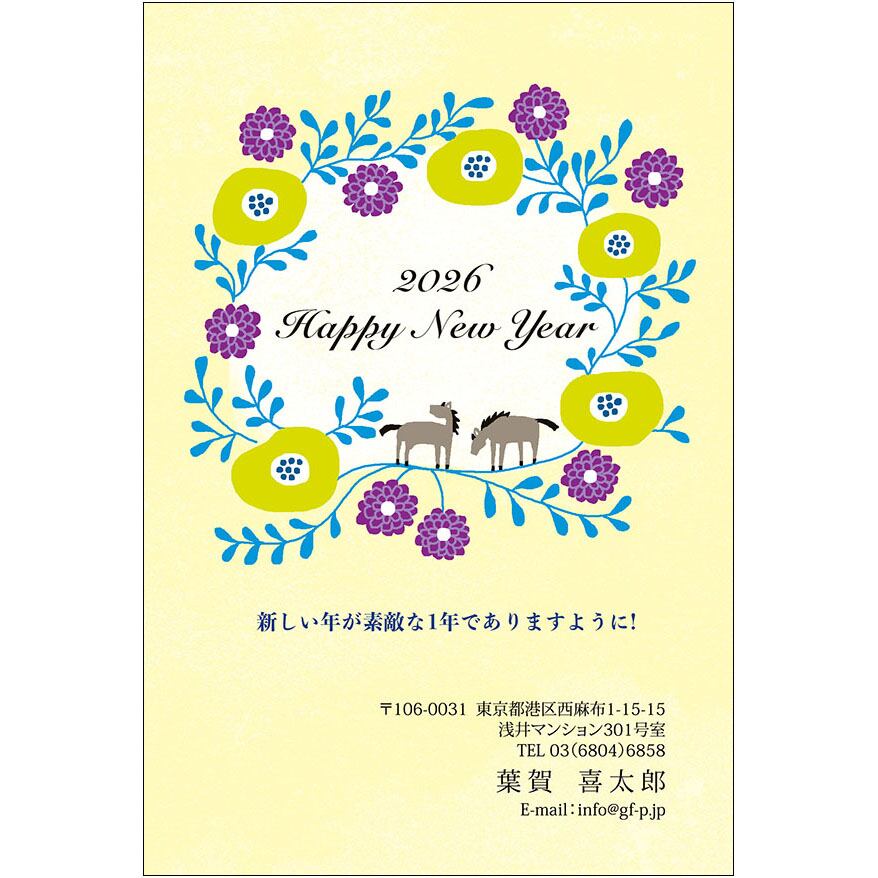 2026午年用の年賀状デザインです。インクジェットプリンターなどで、はがきに印刷してお使いください。