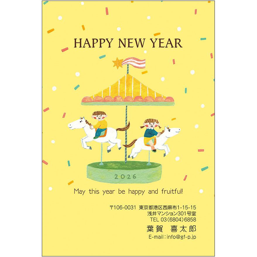 2026午年用の年賀状デザインです。インクジェットプリンターなどで、はがきに印刷してお使いください。
