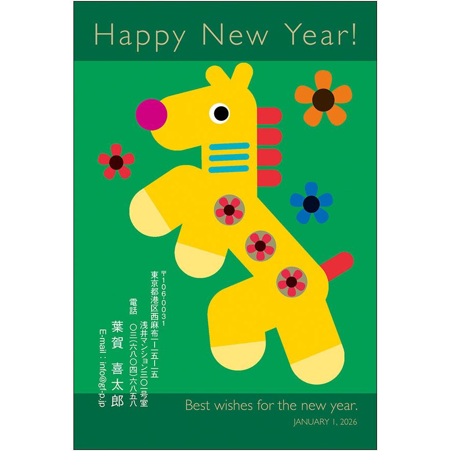 2026午年用の年賀状デザインです。インクジェットプリンターなどで、はがきに印刷してお使いください。