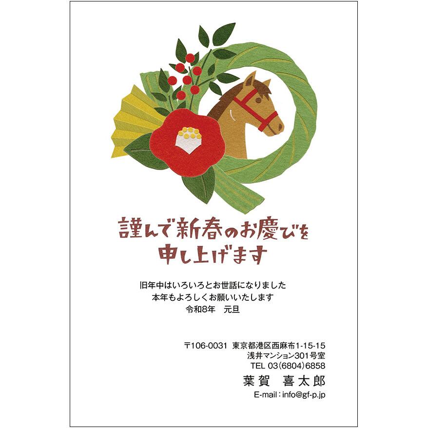 2026午年用の年賀状デザインです。インクジェットプリンターなどで、はがきに印刷してお使いください。