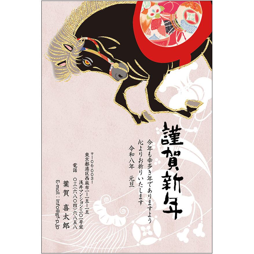 年賀状 , 午年 , うま年 , うまどし , 馬 , 2026年 , デザイン , ダウンロード ,そのまま使うタイプ , 和風フォーマル(華やかタイプ) , A0341 , IF03