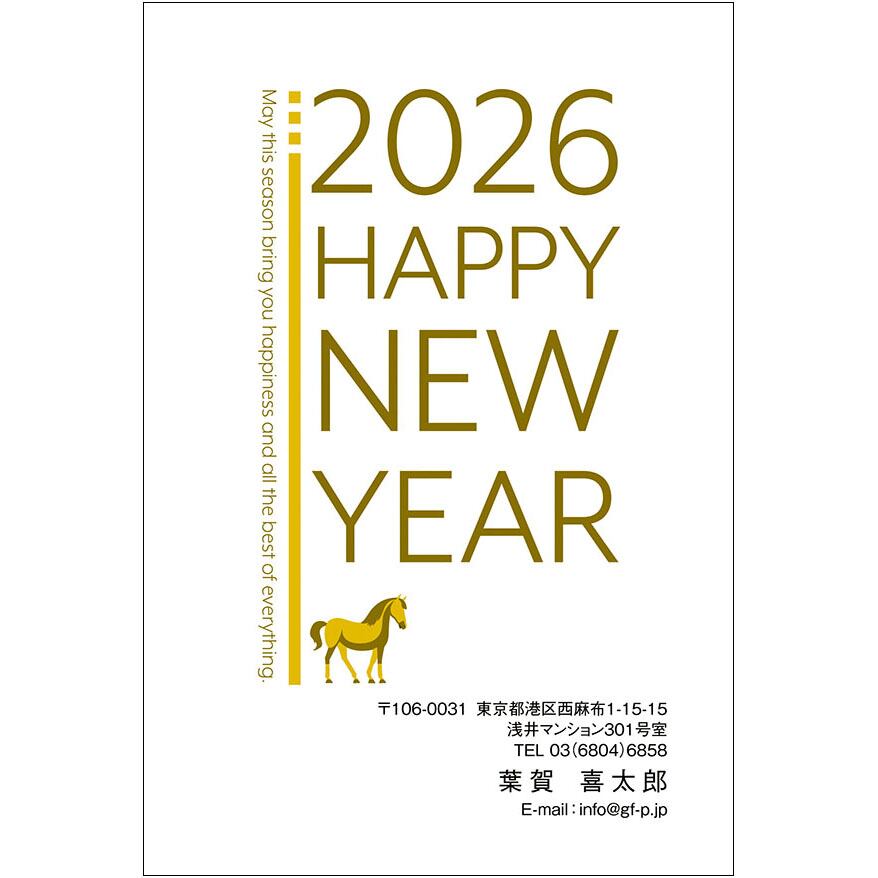 年賀状 , 午年 , うま年 , うまどし , 馬 , 2026年 , デザイン , ダウンロード ,そのまま使うタイプ , シンプル・スタイリッシュ , A0548 , IC06