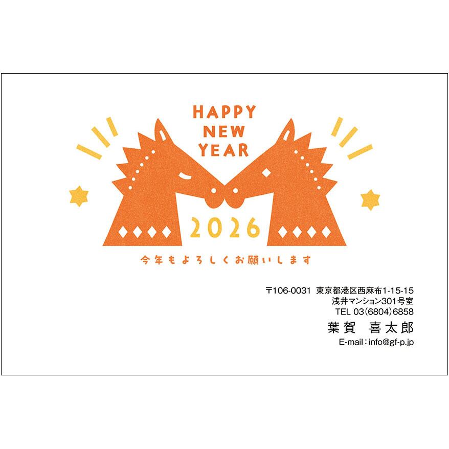 2026午年用の年賀状デザインです。インクジェットプリンターなどで、はがきに印刷してお使いください。