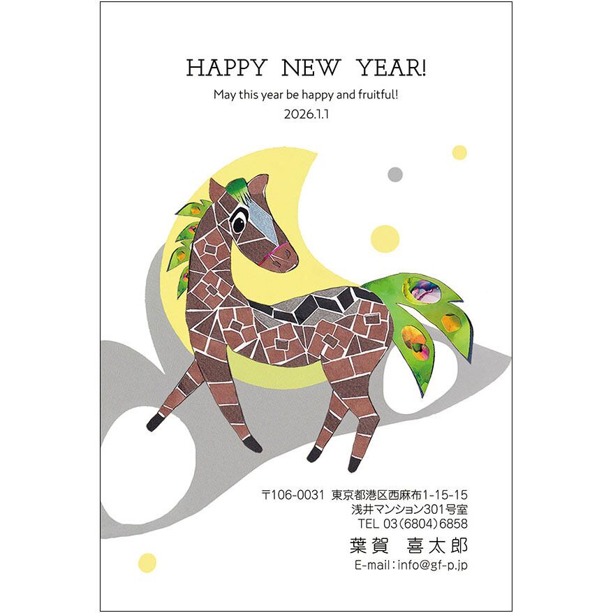 2026午年用の年賀状デザインです。インクジェットプリンターなどで、はがきに印刷してお使いください。