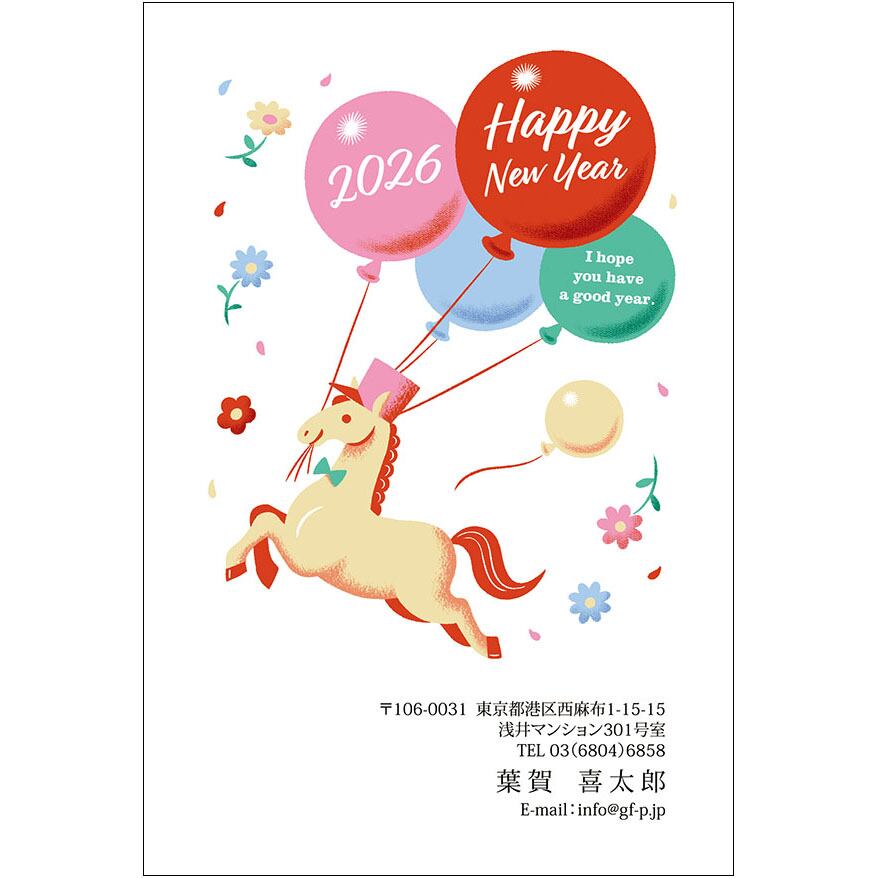 年賀状 , 午年 , うま年 , うまどし , 馬 , 2026年 , デザイン , ダウンロード ,そのまま使うタイプ , おしゃれ・かわいい , A0396 , IC07