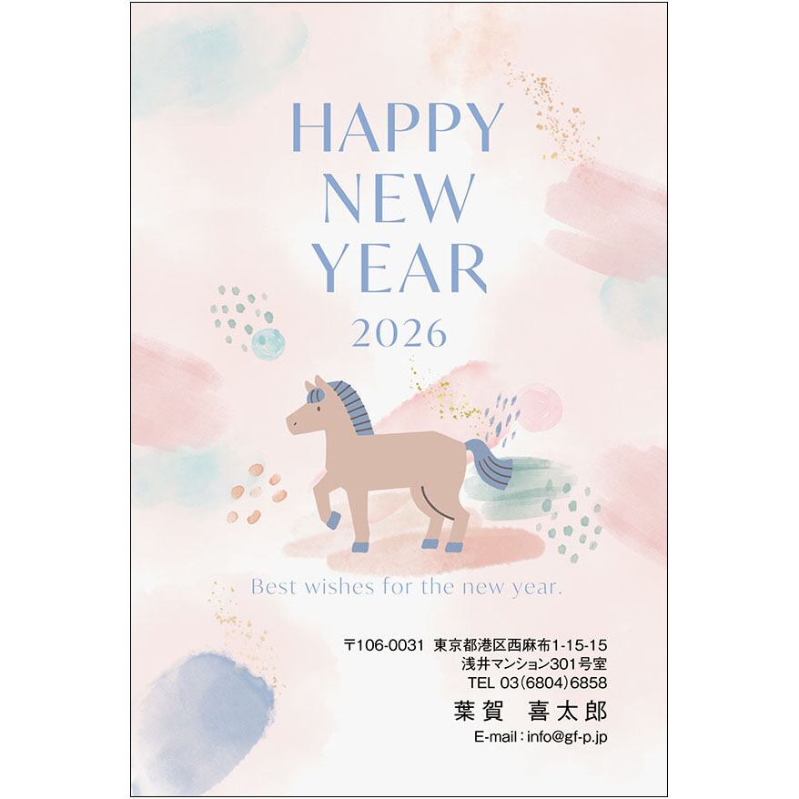 年賀状 , 午年 , うま年 , うまどし , 馬 , 2026年 , デザイン , ダウンロード ,そのまま使うタイプ , おしゃれ・かわいい , A0422 , IC07