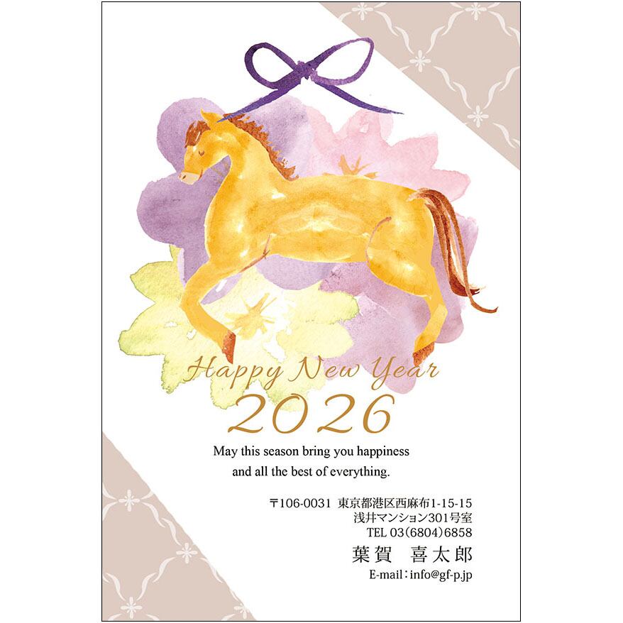 2026午年用の年賀状デザインです。インクジェットプリンターなどで、はがきに印刷してお使いください。
