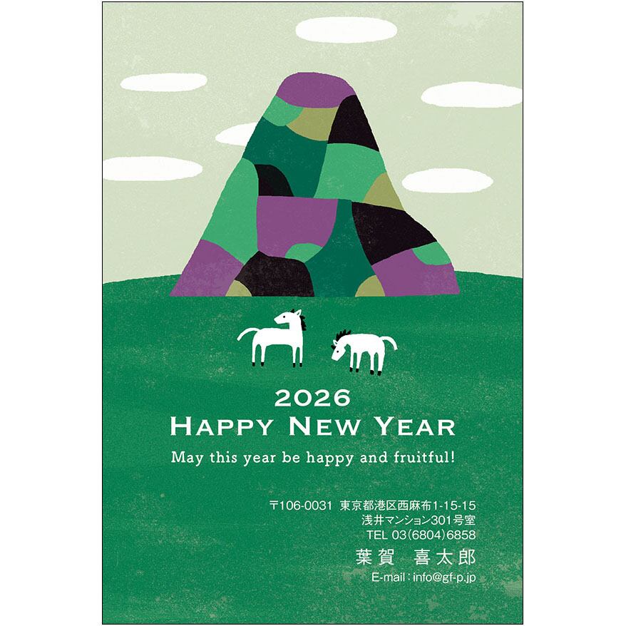 2026午年用の年賀状デザインです。インクジェットプリンターなどで、はがきに印刷してお使いください。