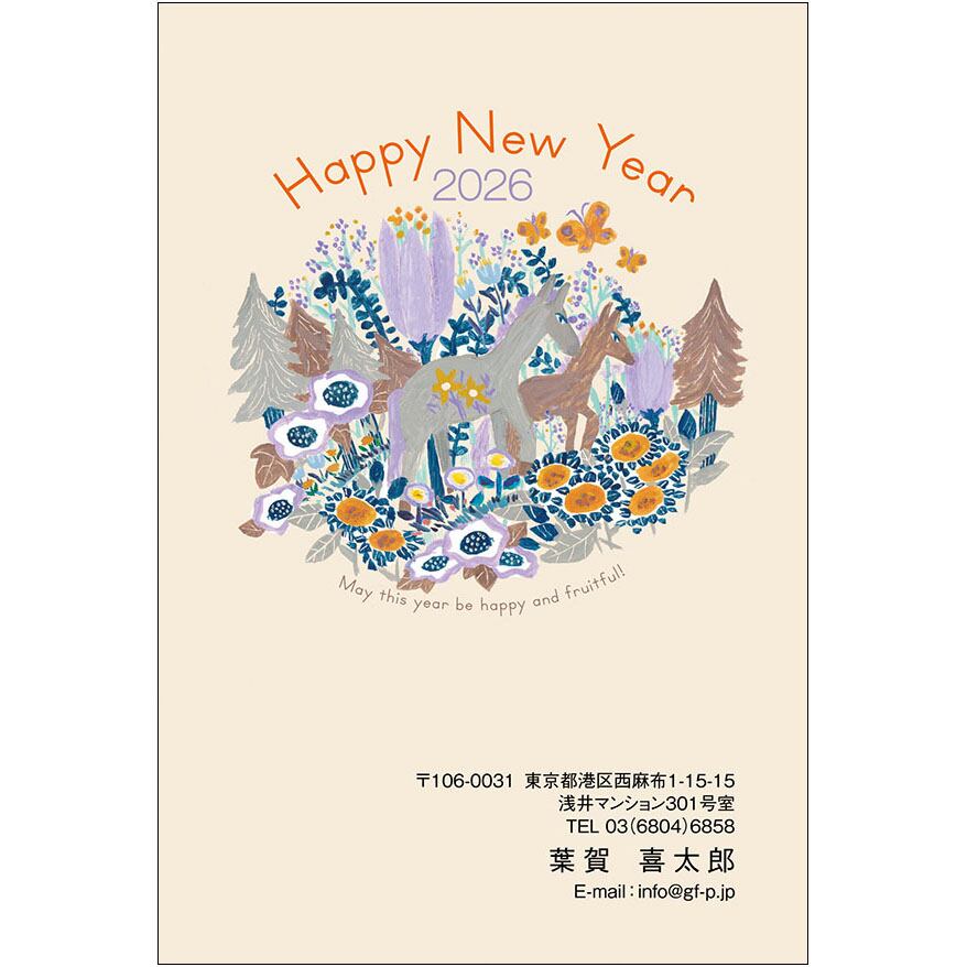 2026午年用の年賀状デザインです。インクジェットプリンターなどで、はがきに印刷してお使いください。