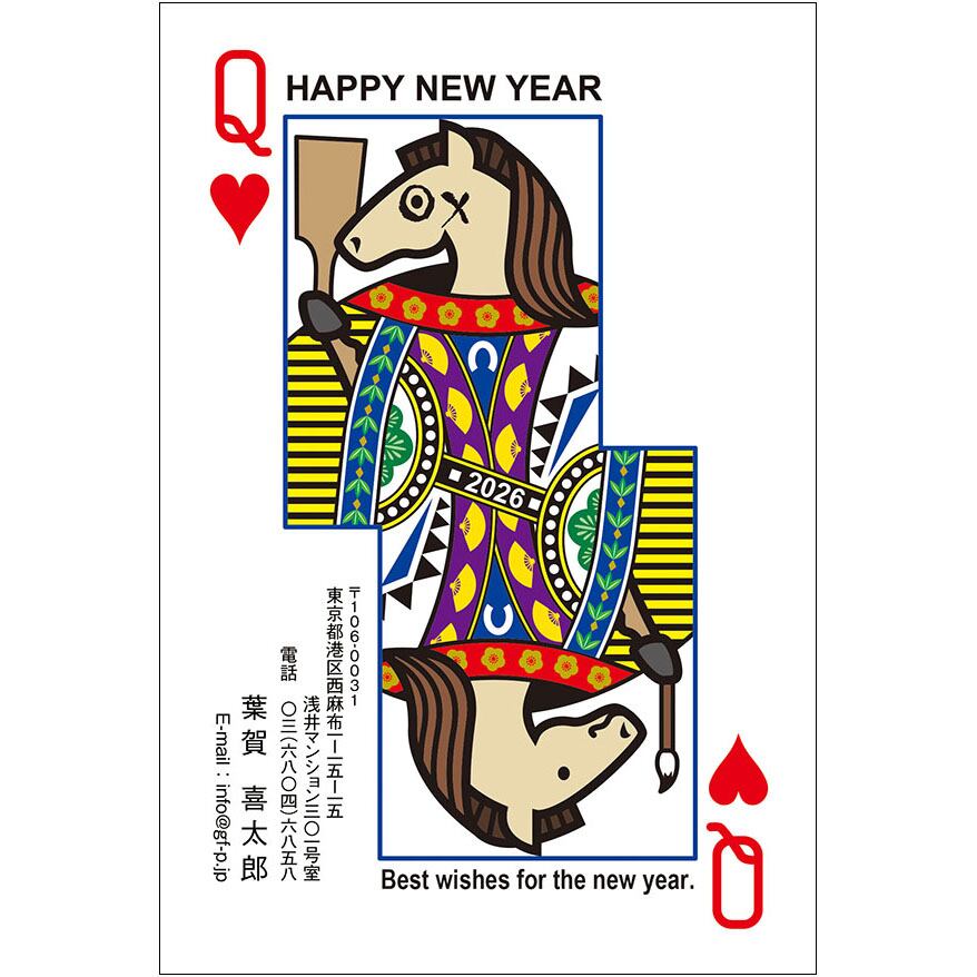 2026午年用の年賀状デザインです。インクジェットプリンターなどで、はがきに印刷してお使いください。