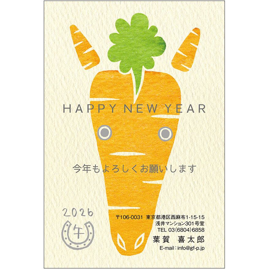 2026午年用の年賀状デザインです。インクジェットプリンターなどで、はがきに印刷してお使いください。