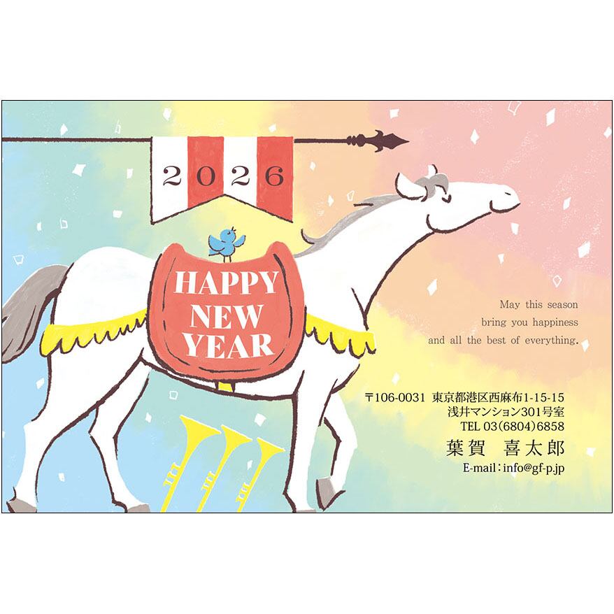 2026午年用の年賀状デザインです。インクジェットプリンターなどで、はがきに印刷してお使いください。