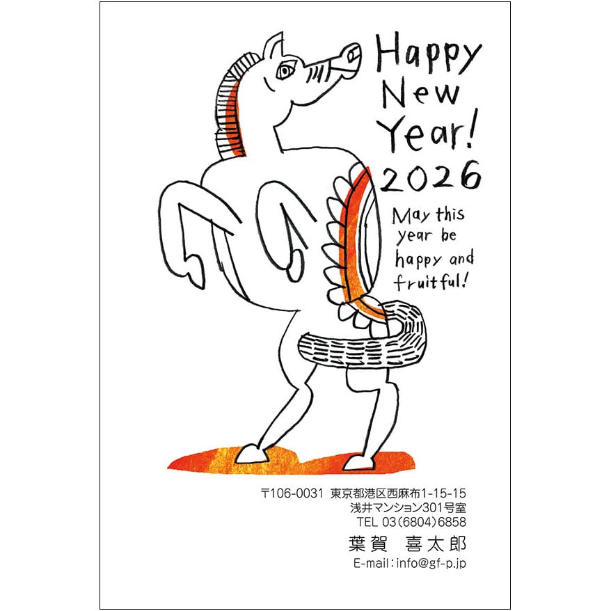 2026午年用の年賀状デザインです。インクジェットプリンターなどで、はがきに印刷してお使いください。
