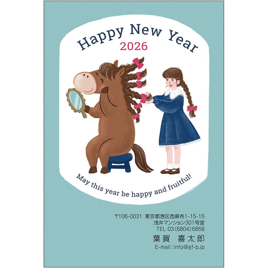 年賀状 , 午年 , うま年 , うまどし , 馬 , 2026年 , デザイン , ダウンロード ,そのまま使うタイプ , オリジナル・ユニーク , A0984 , IC09