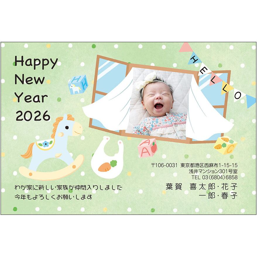 年賀状 , 午年 , うま年 , うまどし , 馬 , 2026年 , デザイン , ダウンロード ,報告に使うタイプ , 出産報告 , A0941 , HK02
