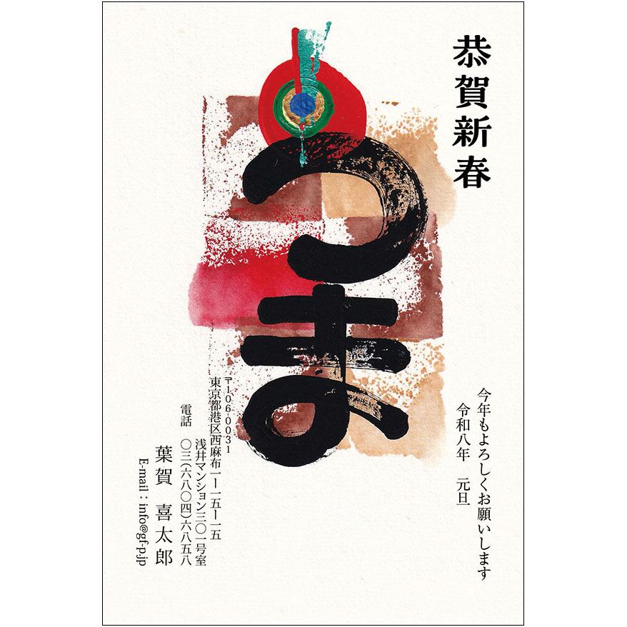 年賀状 , 午年 , うま年 , うまどし , 馬 , 2026年 , デザイン , ダウンロード ,そのまま使うタイプ , 和風カジュアル , A0607 , IC01
