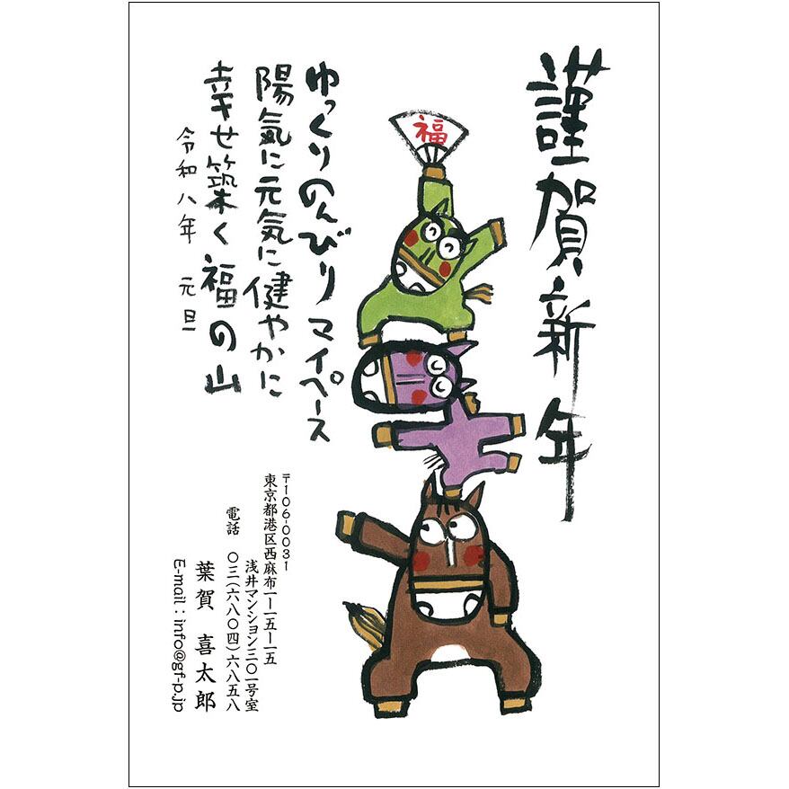 2026午年用の年賀状デザインです。インクジェットプリンターなどで、はがきに印刷してお使いください。