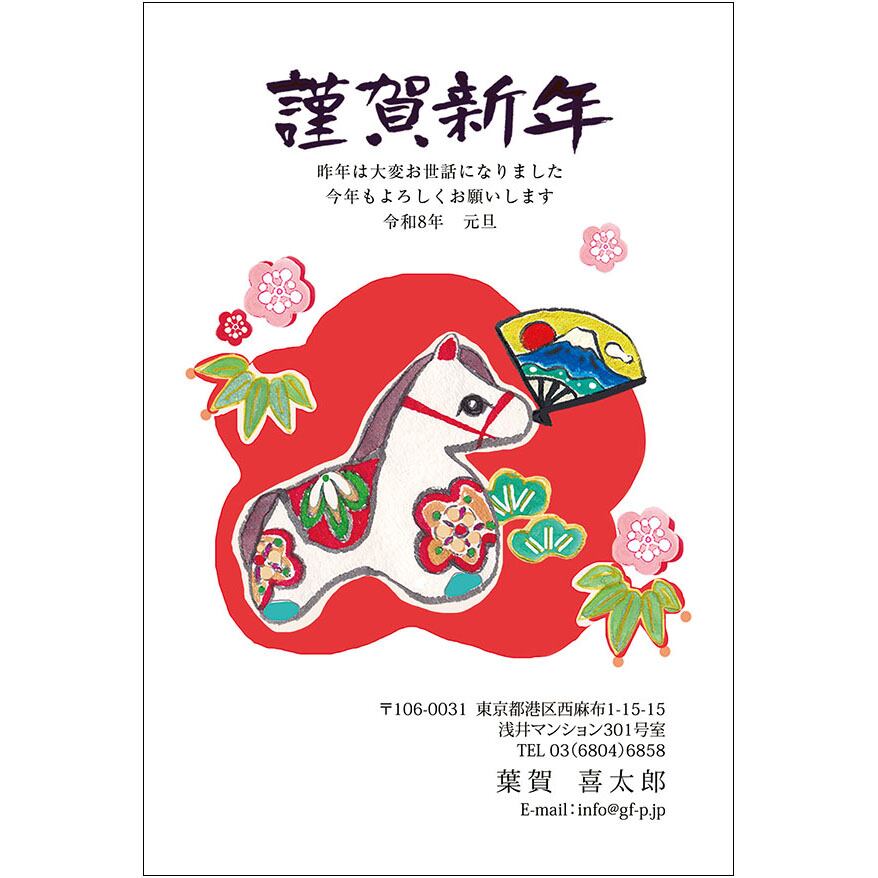 年賀状 , 午年 , うま年 , うまどし , 馬 , 2026年 , デザイン , ダウンロード ,そのまま使うタイプ , 和風カジュアル , A0224 , IC03
