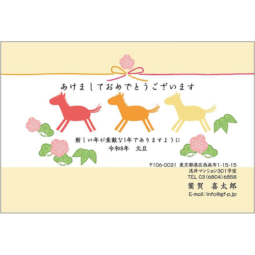 2026午年用の年賀状デザインです。インクジェットプリンターなどで、はがきに印刷してお使いください。