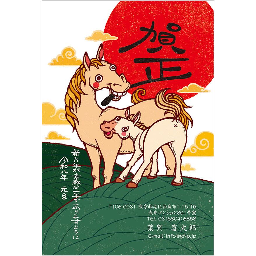 2026午年用の年賀状デザインです。インクジェットプリンターなどで、はがきに印刷してお使いください。
