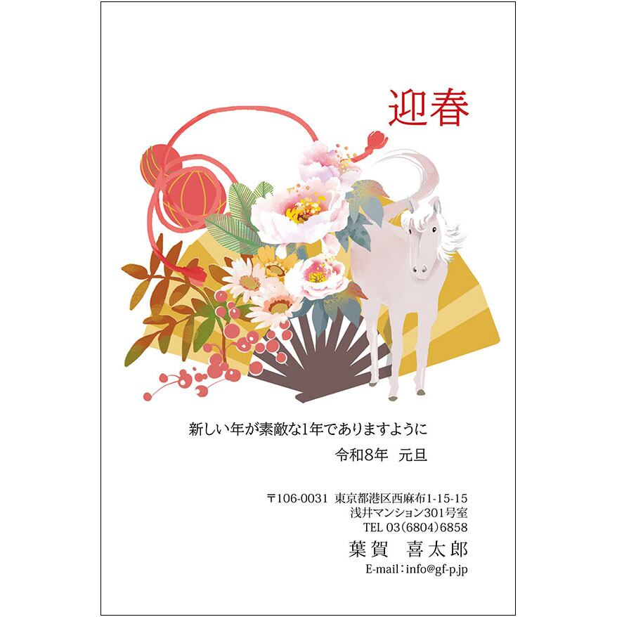 年賀状 , 午年 , うま年 , うまどし , 馬 , 2026年 , デザイン , ダウンロード ,そのまま使うタイプ , 和風カジュアル , A0700 , IC03