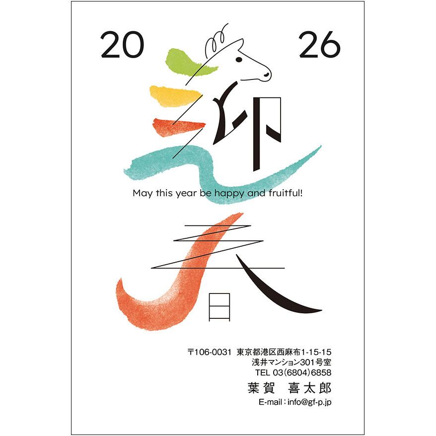 2026午年用の年賀状デザインです。インクジェットプリンターなどで、はがきに印刷してお使いください。