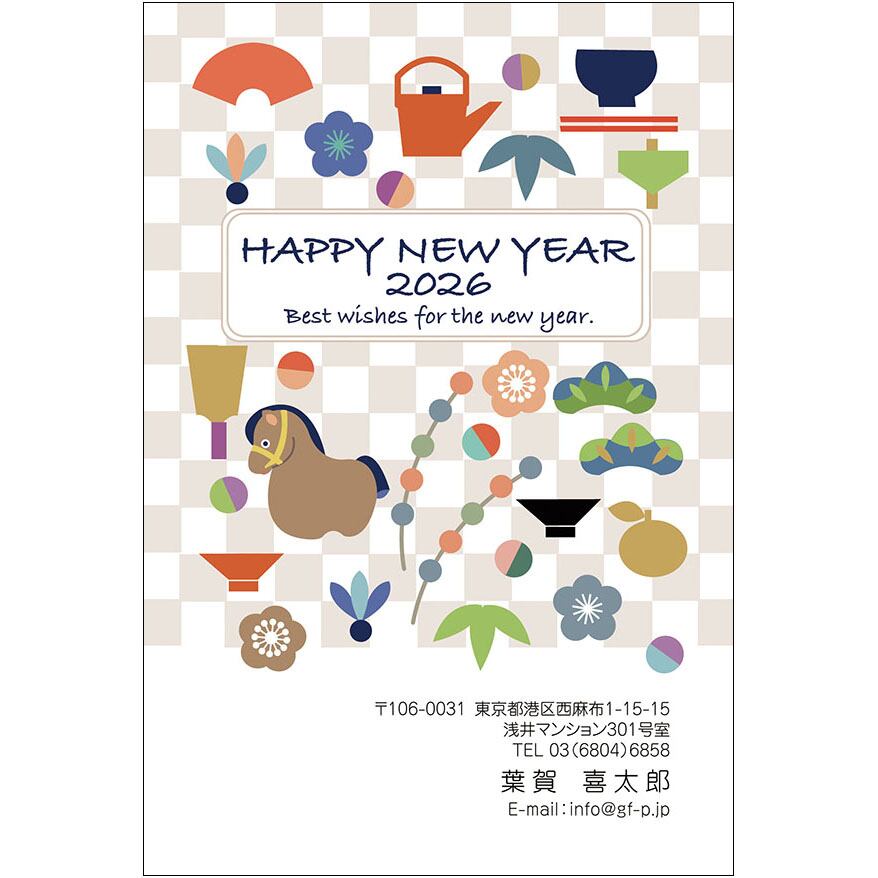 2026午年用の年賀状デザインです。インクジェットプリンターなどで、はがきに印刷してお使いください。