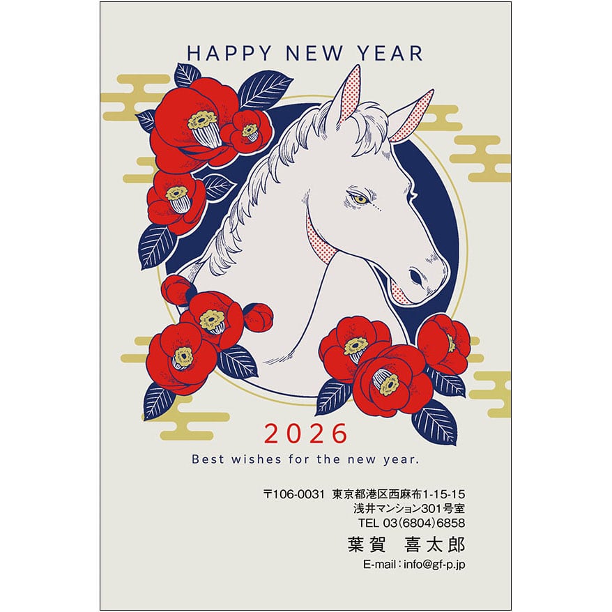 年賀状 , 午年 , うま年 , うまどし , 馬 , 2026年 , デザイン , ダウンロード ,そのまま使うタイプ , ネオジャパネスク , A0983 , IC04