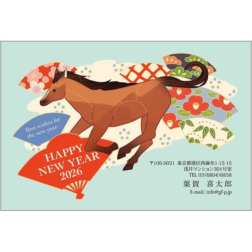 年賀状 , 午年 , うま年 , うまどし , 馬 , 2026年 , デザイン , ダウンロード ,そのまま使うタイプ , ネオジャパネスク , A0176 , IC04