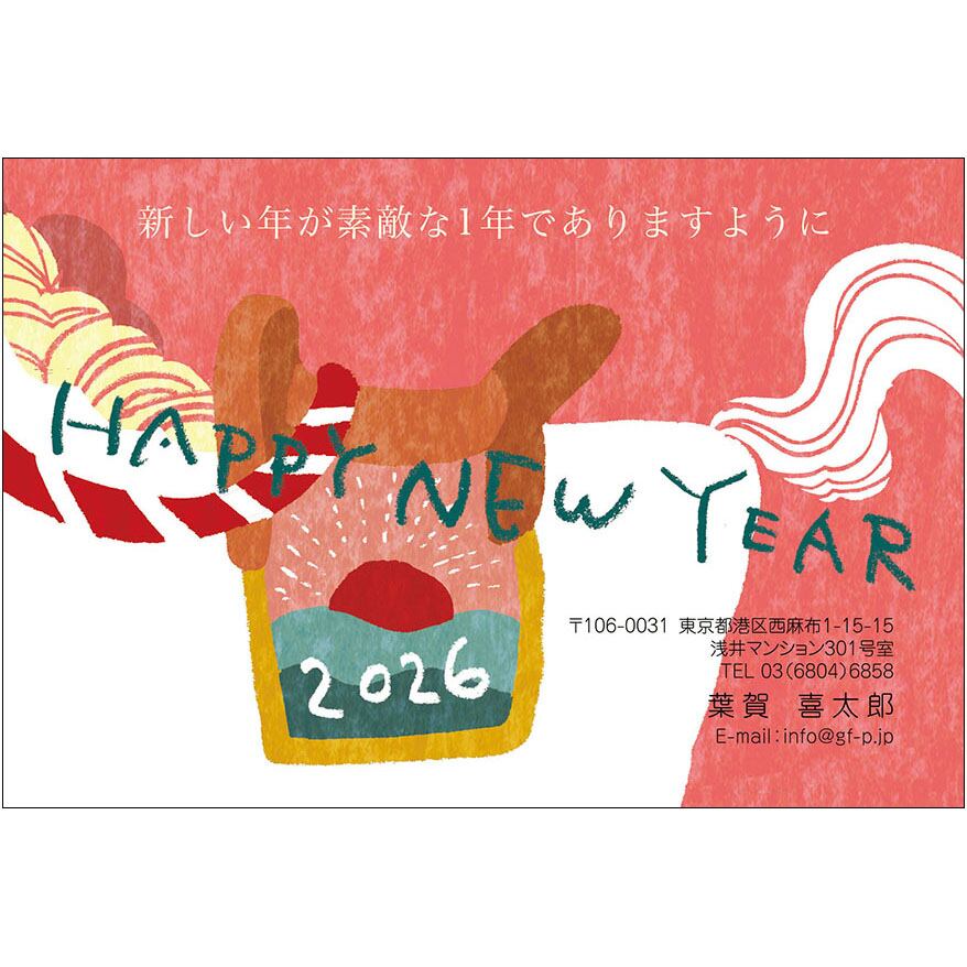 2026午年用の年賀状デザインです。インクジェットプリンターなどで、はがきに印刷してお使いください。