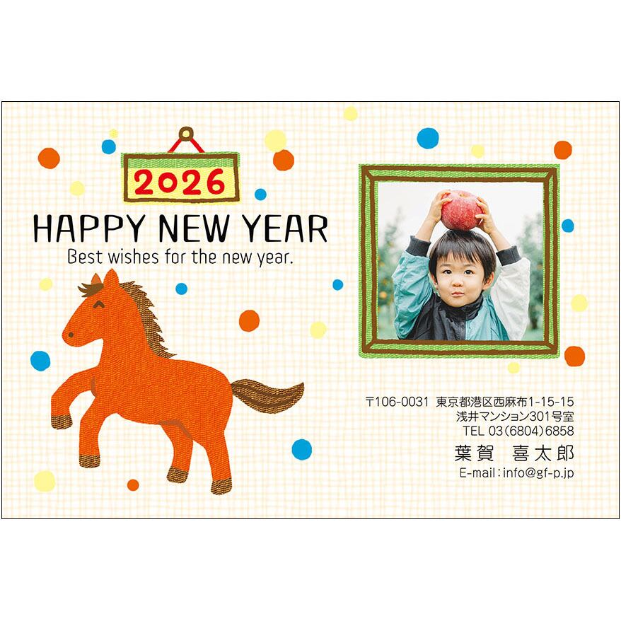 2026午年用の年賀状デザインです。インクジェットプリンターなどで、はがきに印刷してお使いください。