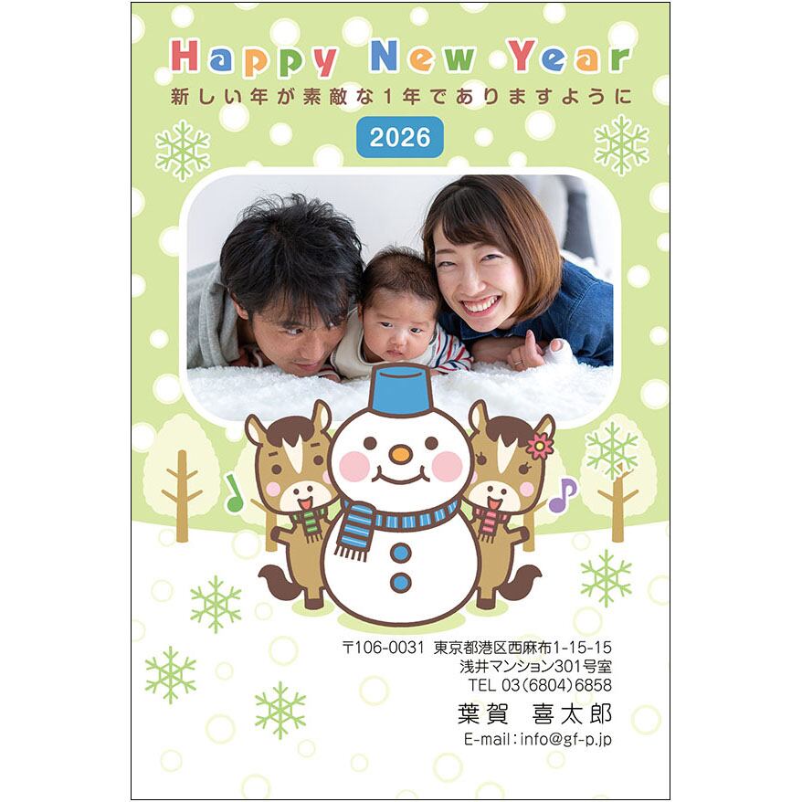 2026午年用の年賀状デザインです。インクジェットプリンターなどで、はがきに印刷してお使いください。