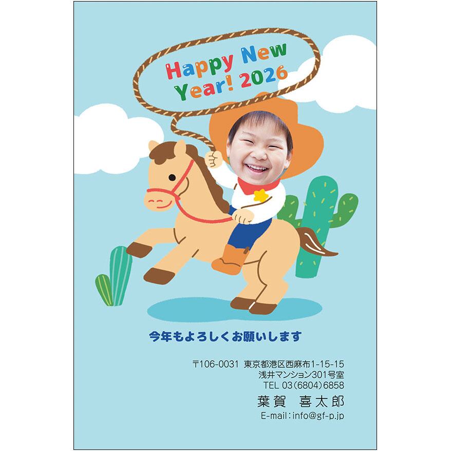 2026午年用の年賀状デザインです。インクジェットプリンターなどで、はがきに印刷してお使いください。
