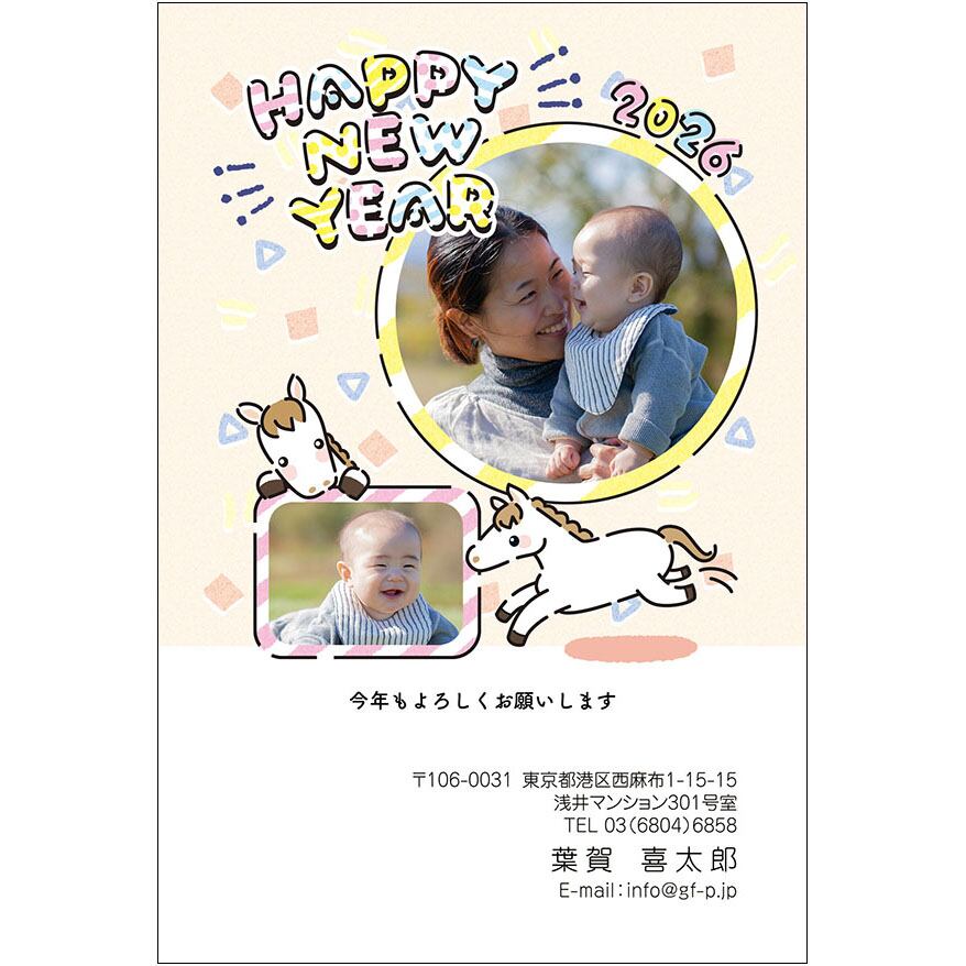 年賀状 , 午年 , うま年 , うまどし , 馬 , 2026年 , デザイン , ダウンロード ,写真を入れるタイプ , おしゃれ・かわいい , A0926 , DC02