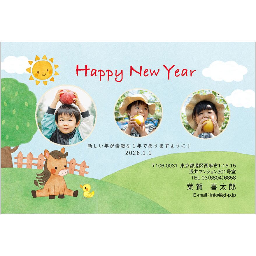 2026午年用の年賀状デザインです。インクジェットプリンターなどで、はがきに印刷してお使いください。
