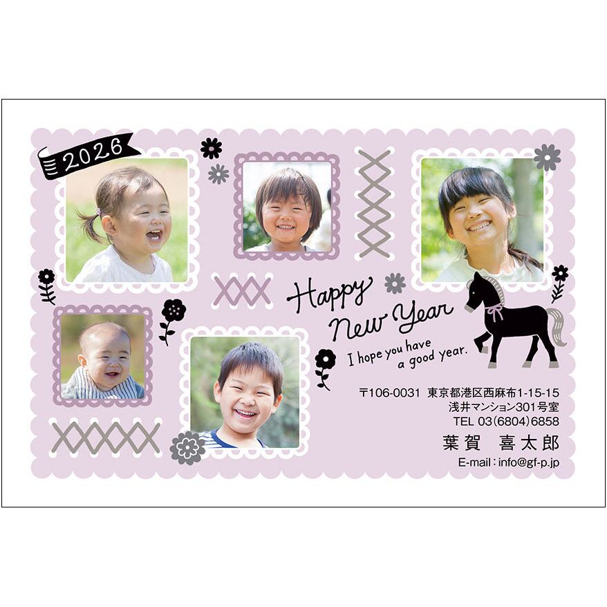 2026午年用の年賀状デザインです。インクジェットプリンターなどで、はがきに印刷してお使いください。