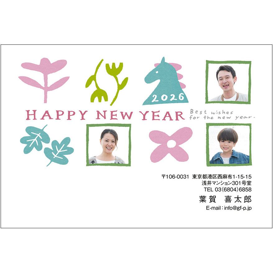 2026午年用の年賀状デザインです。インクジェットプリンターなどで、はがきに印刷してお使いください。