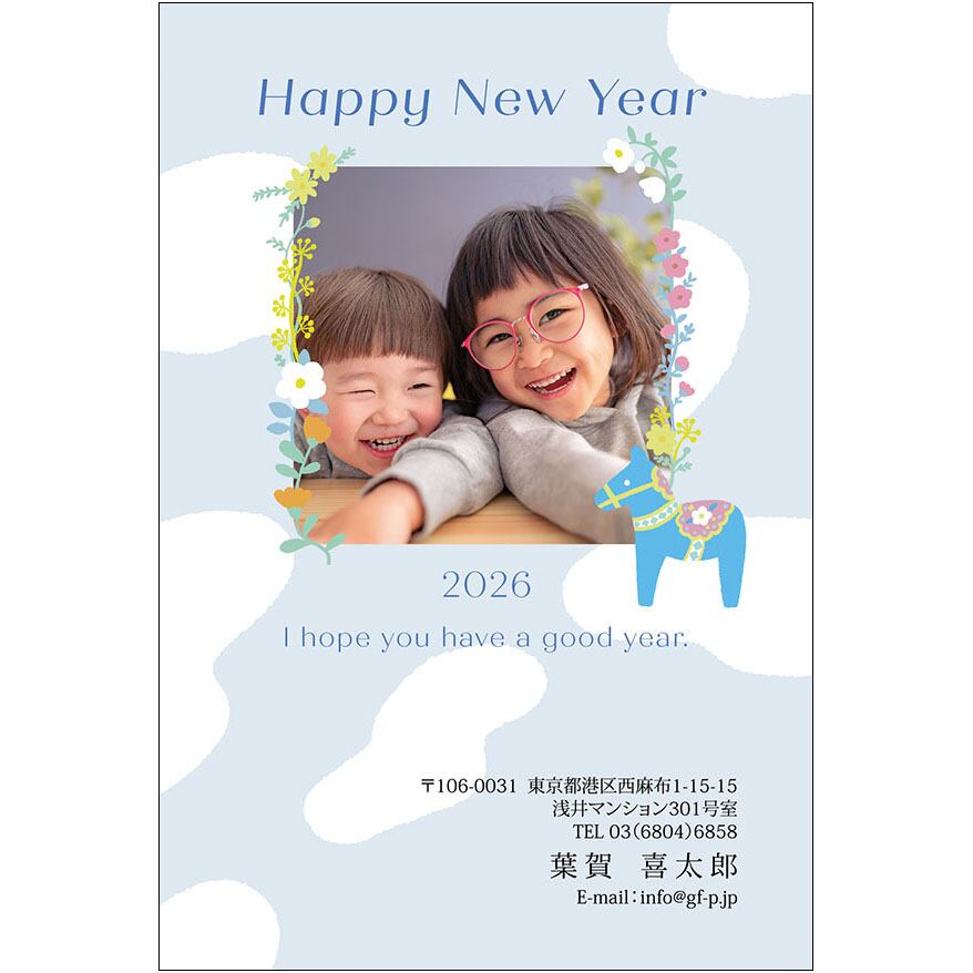 年賀状 , 午年 , うま年 , うまどし , 馬 , 2026年 , デザイン , ダウンロード ,写真を入れるタイプ , おしゃれ・かわいい , A0537 , DC03